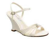 Sizes Available: 10.0 M. Style yourself out in contemporary glam with the Victoria dress wedges from Coloriffics. Dyeable satin or ivory satin upper in a two-piece dress wedge style with round open toe and crisscross pleated straps with elegant center rhinestone-studded keeper and matching studded adjustable ankle strap buckle. Padded insole dress midsole and smooth outsole. 3 1/4 inch wrapped wedge heel.